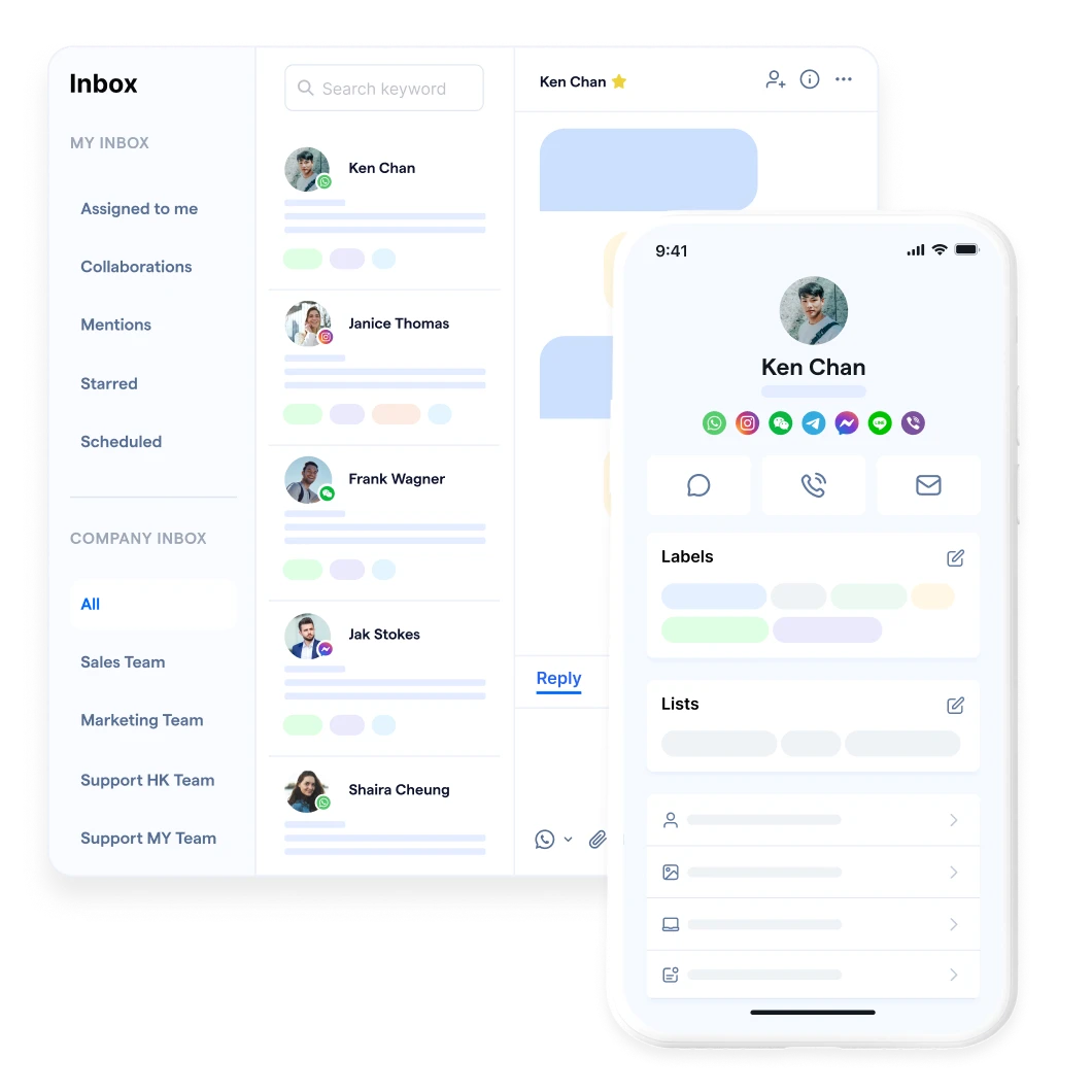 Kamu bisa balasin Chat dalam 1 halaman, semua chat dari semua device whatsapp, akun Fb, IG dan live chat web masuk dalam 1 dashboard. segampang itu anda bisa langsung broadcast dan balasin chat